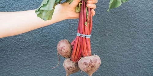 Couper les betteraves en tranches très fines, avec une mandoline si vous avez. Sinon vous pouvez utiliser un économe !
