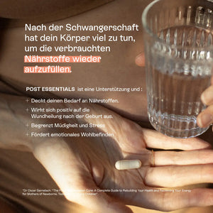 Die Einnahme von Post essentials kann auch mit einem Eisenpräparat kombiniert werden, wenn du einen erhöhten Bedarf hast. Die Kapseln Iron Mama auf Basis von Eisensuccinat helfen, diesen Bedarf zu decken. Du kannst auch unsere Kapseln Mama-Magnesium einnehmen, um deinen Magnesiumbedarf zu decken und neue Energie zu tanken.