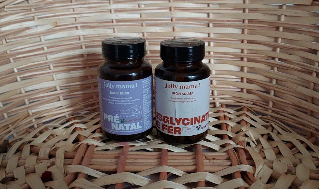 Le complément alimentaire grossesse multivitamines, avec des vitamines et minéraux dont : folates (vitamine B9), choline, DHA, iode, sélénium, zinc, vitamines du groupe B, vitamine D3, vitamine K2, etc.