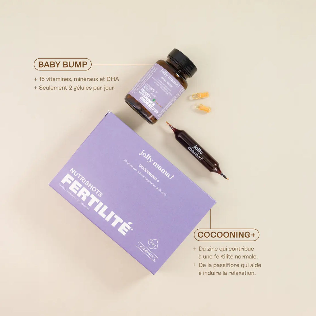 20 ampoules cocooning et 60 gélules baby bump (1 mois)