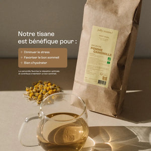La tisane peut ĂȘtre prise en parallĂšle de notre complĂ©ment alimentaire sommeil Mama dreams.