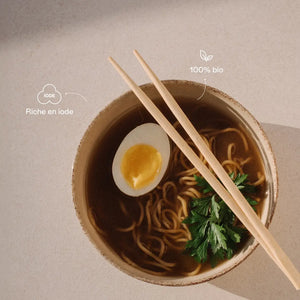 Le bouillon vegan, à base de miso, naturellement riche en iode pour le maintien de la peau et de la fonction thyroïdienne normales.
