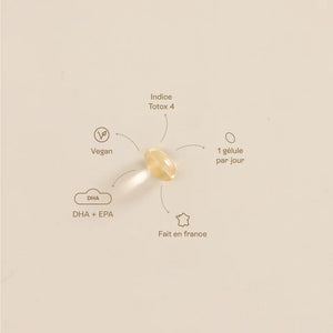 Nous recommandons une cure de DHA et EPA en continu, en particulier si vous consommez peu de poisson ou si vous êtes vegan.