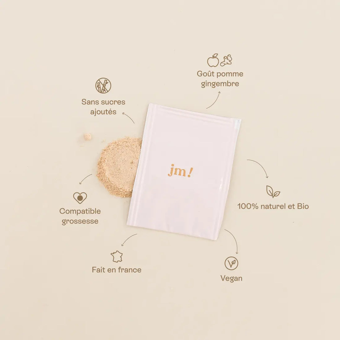Notre complément contient du gingembre, dont les études ont démontré son efficacité pendant la grossesse*. Mais Bye bye nausea ne contient pas seulement cet actif, il contient également 1 autre plante, la cardamome, qui est également très efficace**. Son action est renforcée et complète, pour une meilleure efficacité qu’un complément de gingembre seul. Notre complément est également 100% bio, et en format poudre plus facile à ingérer que plusieurs gélules.