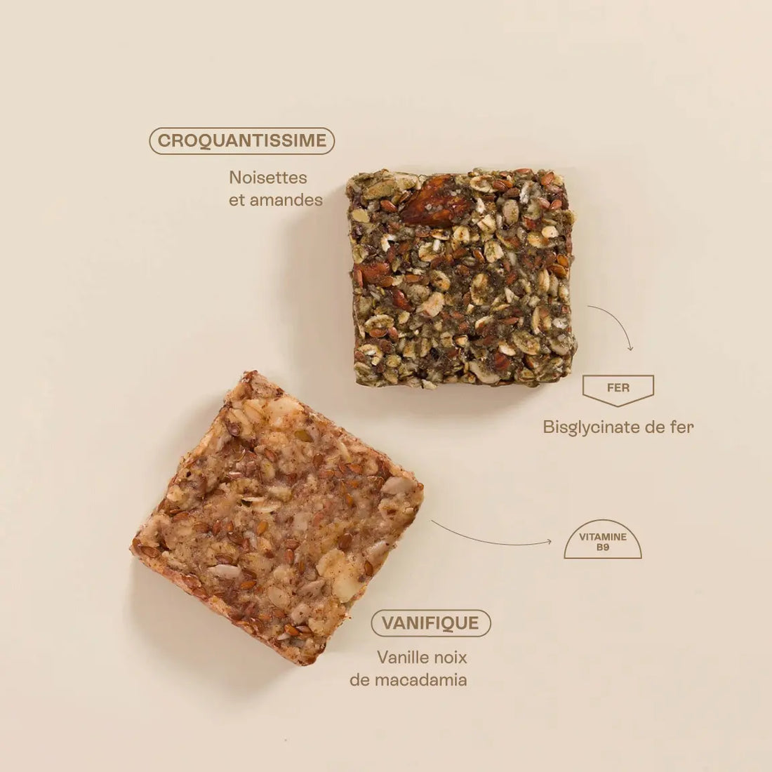 Combler ses besoins en fer. Un snack Croquantissime couvre la moitié des besoins journaliers en fer. Il contient du bisglycinate de fer, une forme hautement assimilable par le corps, et sans aucun inconfort (1)(2).