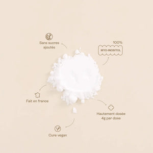 Myo-powder est un complément alimentaire formulé à base de 100 % de myo-inositol, un composé naturellement présent dans l’organisme et impliqué dans de nombreuses voies cellulaires, notamment au niveau ovarien*. Il est couramment utilisé en projet bébé, en particulier pour les femmes souffrant du syndrome des ovaires polykystiques (SOPK). Une dose quotidienne fournit 4 g de myo-inositol, la quantité utilisée dans la plupart des études cliniques**.