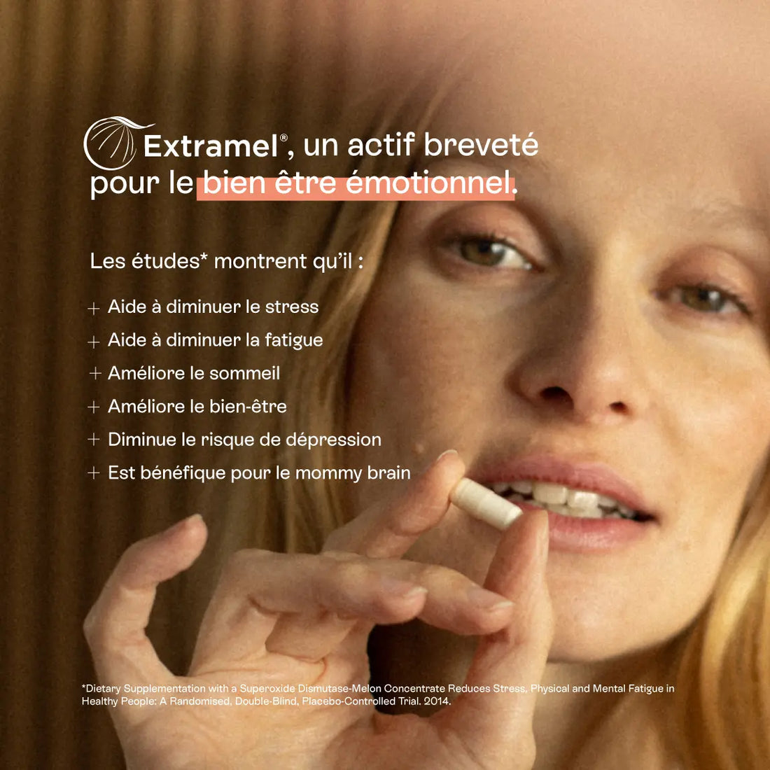 Extramel® est un extrait de melon à l'efficacité cliniquement prouvée pour soulager le stress et les symptômes associés mais aussi améliorer le bien-être général (2).