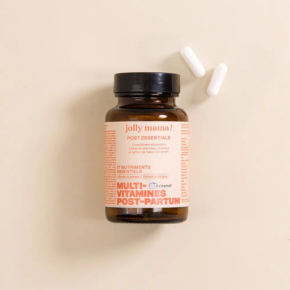 Vous pouvez cumuler la prise de Post essentials avec Happy postpartum, notre complément alimentaire post partum pour le bien-être physique et émotionnel.